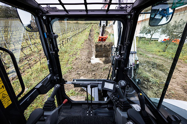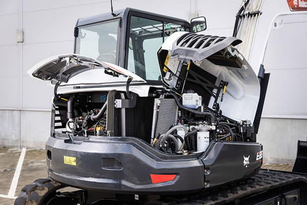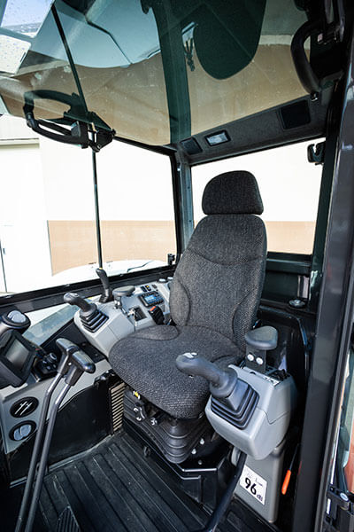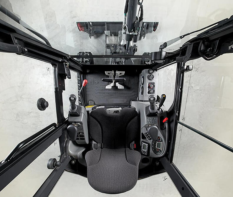 Kabine mini bagrov Bobcat v tem razredu so izjemno široke in udobne, s številnimi predali za shranjevanje in držali za osebne stvari. Sedež je res udoben in ga je mogoče naročiti z ogrevanjem in vzglavnikom za maksimalno udobje. 5-palčni zaslon je standarden, mini bager pa je lahko opremljen s 7-palčnim zaslonom na dotik z vgrajenim radiem in kamero za vzvratni pogled (dodatna oprema). Odlično vidljivost zagotavljajo široka stekla, brisalci s prekinitvenim delovanjem, ogrevano zadnje steklo in LED luči.