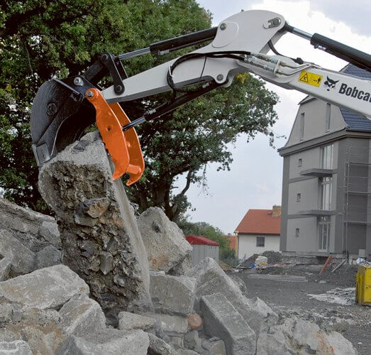 Hidravlična prijemalo vključuje grabež s hidravličnim cilindrom, ki ga poganja pomožna hidravlika bagra. Uporablja se lahko s standardno žlico za izkop ali ravnanje. Z lahkoto prime različne predmete, kot so kosi betona, hlodi in rastlinski ostanki, armatura itd. Z grabežem je hitro in enostavno delati, uporablja pa se za čiščenje gradbišč, nakladanje itd.