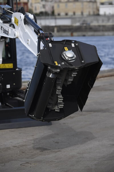 Opremljen z vzdržljivo zaščito pred nabiranjem umazanije se boben ustavi z največje hitrosti v manj kot desetih sekundah, ko je hidravlika kosilnice deaktivirana.