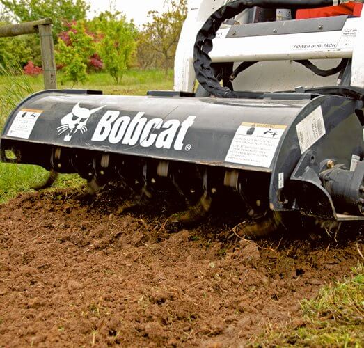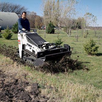 Odličen priključek za urejanje okolice. Hitro razdrobi zemljo in vanjo vmeša kompost ter druge materiale. Odmaknjena montaža omogoča obdelavo v bližini pločnikov, robnikov in stavb.