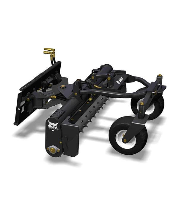 Večnamenski priključek za ravnanje terena. Prihrani čas in trud pri ravnanju brazd, premikanju materiala ali ravnanju kupov zemlje. Ustvari popoln prostor za semena in zelene površine. Ločuje kamenje in kepe, ravna in izravnava, rahlja zemljo. Lahko deluje pod kotom do 25 stopinj v levo ali desno, deluje naprej ali nazaj. Hidromotor z neposrednim pogonom odpravlja potrebo po verigah in zobnikih v konstrukciji.